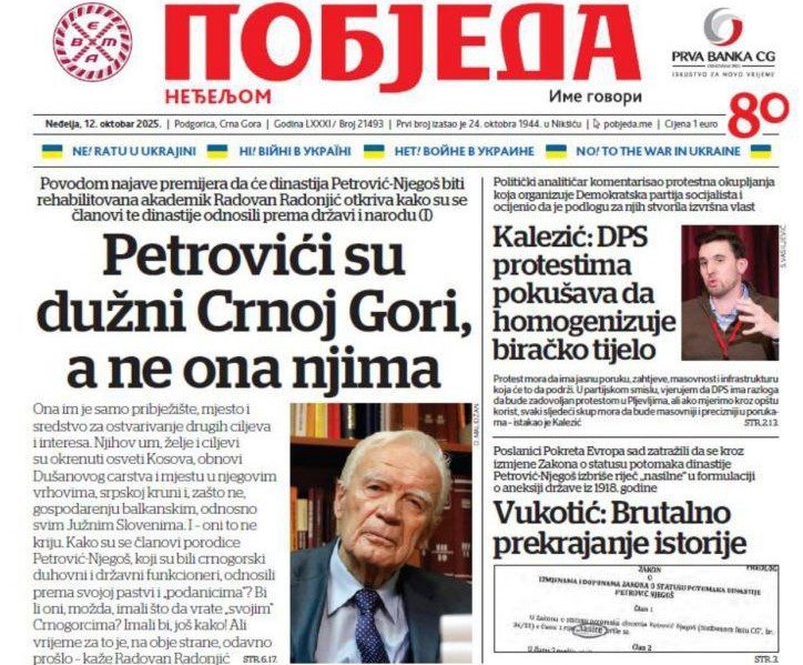 Taman se malo narod obradovao rušenju Bemaksove kriminalno-medijske piramide, kad nas Pobjeda neđeljom pouči da vrijeme guvernadura još nije prošlo. Na udarnom mjestu pečatali su uvredljiv prilog (biće i nastavaka!) o dinastiji Petrović – Njegoš iz pera umišljenog guvernadura, poznatog po profesuri, Radovana Radonjića.
