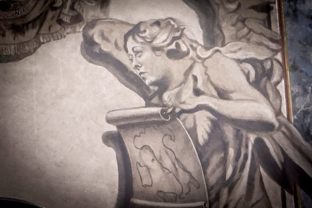 Freska prikazuje dva anđela (heruvima) nagnuta nad mermernim poprsjem kralja: jedan sa savojskom krunom, drugi sa „čizmom“, simbolom Italije. Upravo lice ovog drugog izazvalo je lavinu komentara, medijskih analiza i reakcija na društvenim mrežama, zbog navodne sličnosti sa aktuelnom predsednicom Saveta ministara, Đorđom Meloni.