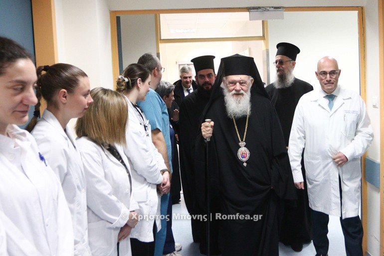 Његово Блаженство г. Јеронима пратио је Његово Преосвештенство епископ г. Апостолос, а свечаности су присуствовали и ректор Универзитета у Атини г. Герасимос Сиасос, декан Факултета здравствених наука гђа Елени Лају, предсједник Медицинског факултета г. Николаос Аркадопулос, управница Прве здравствене управе гђа Олга Балаура, управник болнице „Лаикон“ г. Теофанис Роидис, као и запослени у овој здравственој установи.