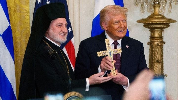 Архиепископ је додатно захвалио предсједнику Трампу на подршци Грчкој и залагању за правду на Кипру. При крају свог говора, даровао је председнику Трампу „Часни Крст“, позвавши се на визију коју је имао цар Константин Велики.
