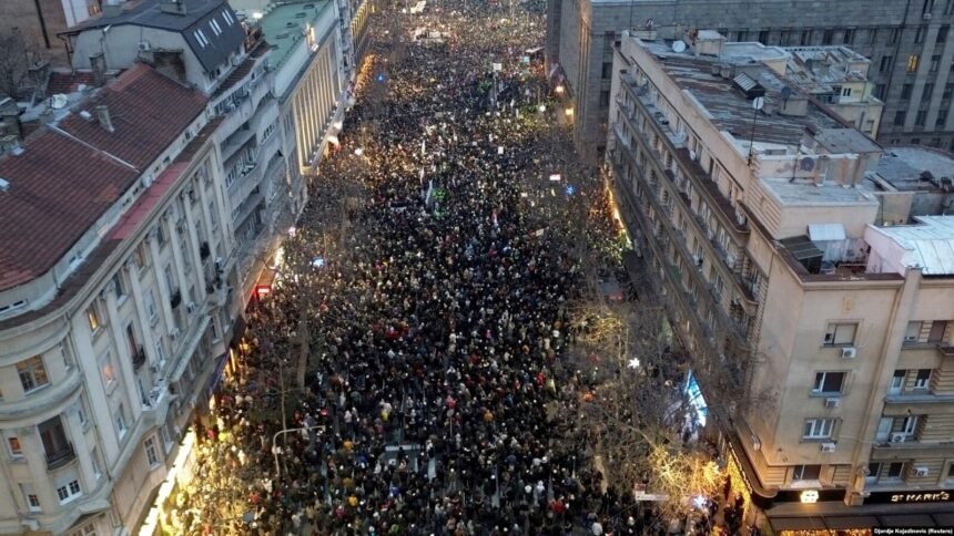 Tog dana, postalo je jasno da je režim Aleksandra Vučića izgubio vlast nad srpskim društvom, ali ne i moć nad državnim institucijama. Drugim rečima, postalo je jasno da režim više ne može da upravlja društvenim tokovima, ali i da društvo nema uticaja na državu. Tog dana, postalo je očigledno ono što je moglo da se nasluti već neko vreme, a to je da se Srbija nalazi u stanju raskola. Taj raskol se vidi na svakom koraku: recimo u kampu u Pionirskom parku, koji je tokom dana uoči 15. marta služio ne kao izraz podrške režimu ili otpora prema studenskom pokretu, već kao studio na otvorenom prorežimskih medija. Na primer, dok desetine hiljada građana ide ka Beogradu da bi uzelo učešće u protestu, Politika javlja da su „studenti“ u Pionirskom parku razvili veliku srpsku trobojku. Šta?! Treba ipak nekako popuniti naslovne strane novina i vreme udarnih informativnih emisija, ma koliko „vesti“ bile fabrikovane i besmislene. Ali, to ne iscrpljuje smisao ove i drugih besmislenih „vesti“.