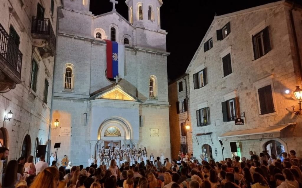 На препуном тргу између цркава Светог Николе и Светог Луке синоћ је одржан концерт дјечијег и омладинског хора Српског пјевачког друштва (СПД) „Јединство“ 1839. Котор.