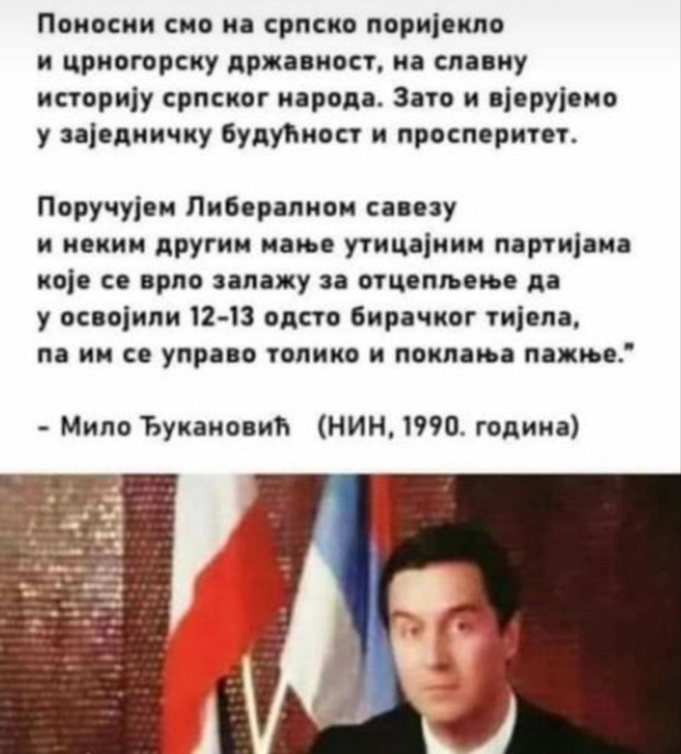 историју српског народа. Зато и вјерујемо у заједничку будућност и просперитет.Поручујем Либералном савезу и неким другим мање утицајним партијама