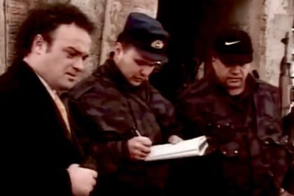 Снимак њемачке телевизије, у коме бивши посматрач ОЕБС-а високи полицајац Хенинг Хенш разобличава лажи Рудолфа…