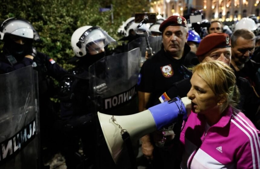 Plitak policijski kordon rasporedio se od osmatračnice sa Kajmakčalana, ugla ulica Kneza Miloša početka Bulevara kralja Aleksandra i omanjeg parka prema Kosovskoj ulici. Uzajamno vređanje i dobacivanje presecano je, iz režimskog uporišta, bacanjem flaša vode, poneke kamenice, baklje i drugih pirotehničkih sredstava. U jednom trenutku, grupica izgrednika iz Pionirskog parka, primakla se, opremljena motkama, samoj ogradi, te bacila baklju, plastičnu stolicu i poneku plastičnu flašu. Policijske snage, uglavnom nisu reagovale na izgredničko ponašanje iza sopstvenih leđa, osim što bi se štrecnuli kad nešto pukne. Posle ovog izgreda, kordon se rasporedio blizu zgrade turske ambasade kod raskršća Krunske i Kneza Miloša i poviše kuće supružnika Čedomilja Mijatovića i Elizabet Lot.