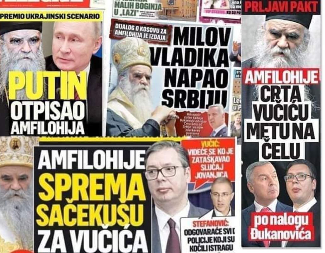 Ако се питате да ли су сви овдашњи политичари који нијесу под командом Вучића, истовремено издајници српства, ево погледајте ове наслове који се нијесу либили да „издајником“ зову и митрополита Амфилохија.