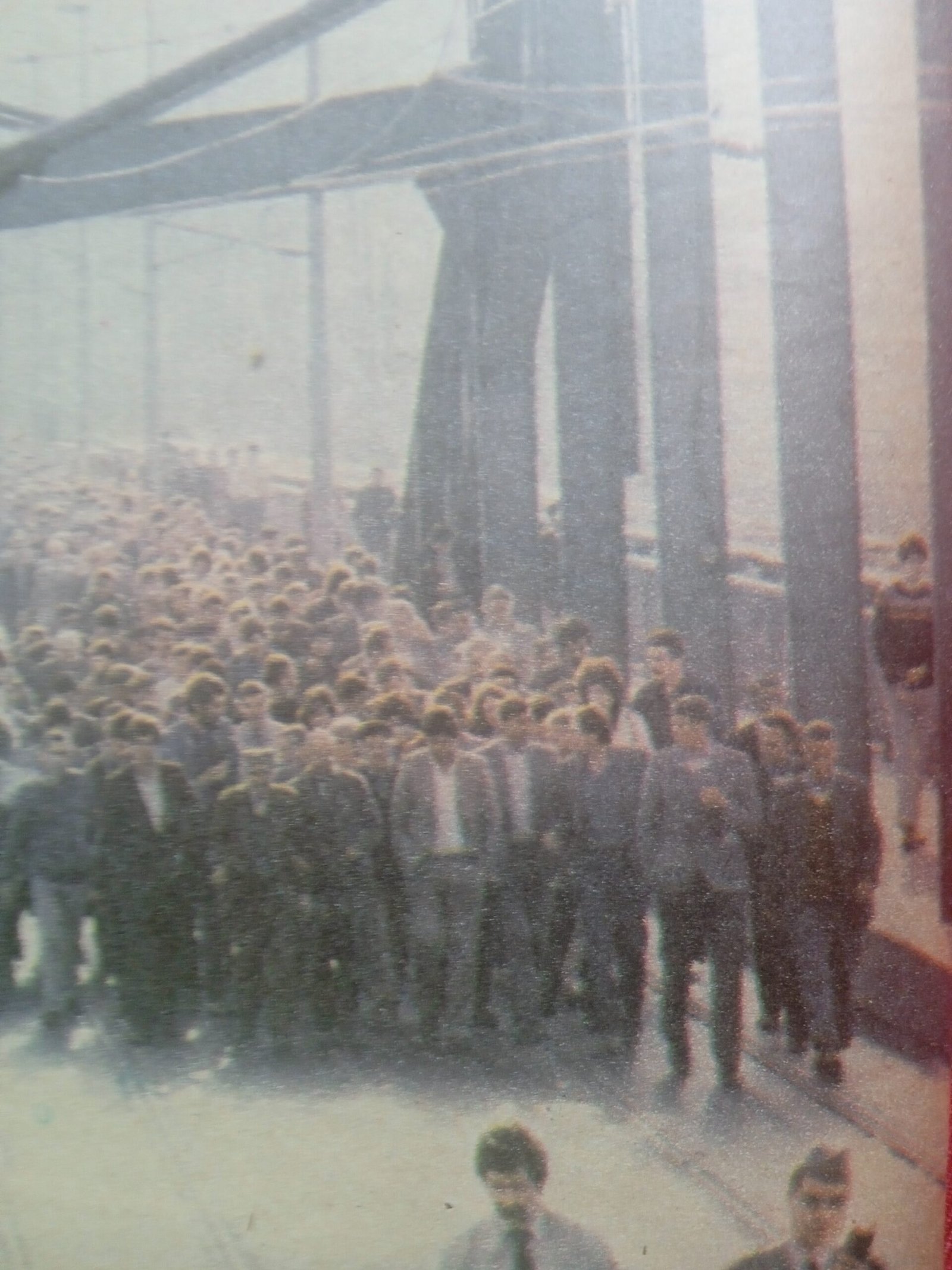 „Pošto je Prizren udaljen samo sat vožnje od epicentra događaja, a takvim pričama je nekoliko stotina okupljenih od ranog jutra elektriziralo atmosferu, NIN-ov novinar je, izražavajući zdravu skepsu, seo u kola i zajedno sa foto-reporterom odveo Bulatovićevu kćerku do istražnog zatvora.“ Tamo je, pretpostavljate, sve prošlo ne može bolje biti (ostala je i jedna fotografija Koste Bulatovića sa lisicama na rukama i ćerkom i milicionerom u istražnom zatvoru), pa su umirujuće vesti ohladile atmosferu u Kosovu Polju. A to je itekako bilo potrebno jer se oko 18 sati tu skupilo, po Tijanićevoj proceni, više od pet hiljada ljudi. Počelo je skandiranje „hoćemo slobodu!“, i „svi, svi…“, sa značenjem ako ovako ostane svi ćemo se odmah iseliti sa Kosova. Starina Boža Marković iz Batusa pozvao je da se u ponedeljak krene za Beograd. U zbinjavima te večeri, Tijanićeve oči skeniraju publiku: