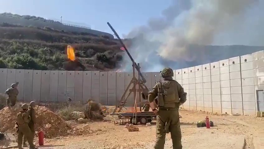 ISRAEL: Soldiers using a flaming trebuchet to launch fireballs into Lebanon. pic.twitter.com/qa2TUBMMt3