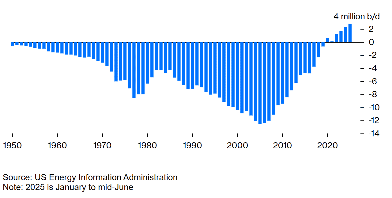Uporedo sa bumom u crpljenju, naglo je opao uvoz nafte. Tokom 2005. godine SAD su bile neto kupac 12 miliona barela – sirove nafte i rafinisanih proizvoda; prošle nedelje one su bile neto izvoznik četiri miliona barela svakog dana.