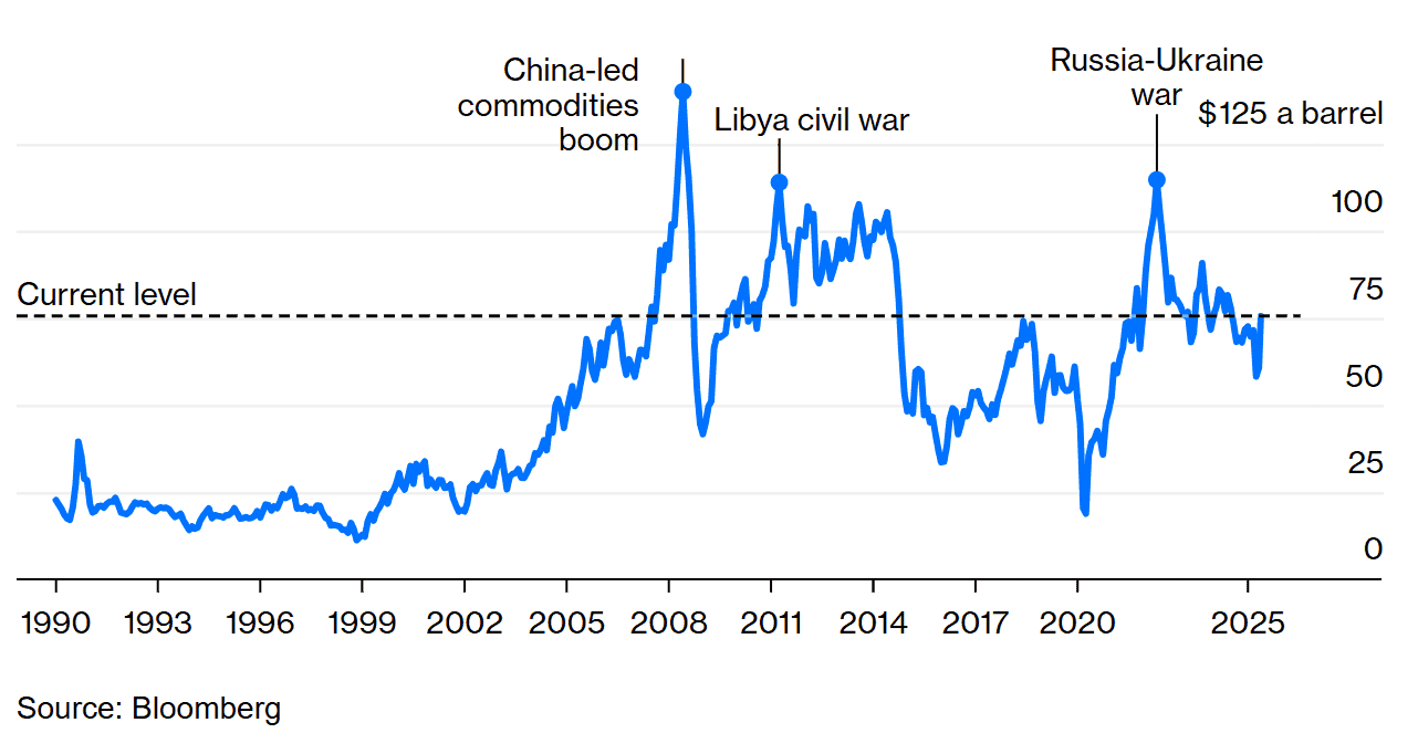 Čak je i kolaps islamske republike velika opasnost. Ironično, iranski izvoz nafte beleži najviše vrednosti dok bombe padaju, uz mesečnu količinu u junu koja se kretala prema sedmogodišnjem maksimumu od više od 3,5 miliona barela dnevno. Haos koji bi usledio posle okončanja teokratske vladavine mogao bi da strmoglavi proizvodnju, kao što se to desilo u Libiji nakon pada četrdeset dvogodišnjeg režima Moamera el-Gadafija. Libijska kriza održavala je cene nafte preko sto dolara po barelu pošto je svet ostao bez jednog procenta ukupnog snabdevanja.