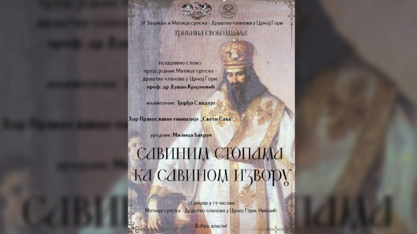 Javna ustanova (JU) „Zahumlje“ i Matica srpska – Društvo članova u Crnoj Gori, u utorak, 27. januara, sa početkom u 19 časova u okviru Tribine „Svobodijada“ organizovaće poetsko-muzičko veče „Savinim stopama ka Savinom izvoru“.