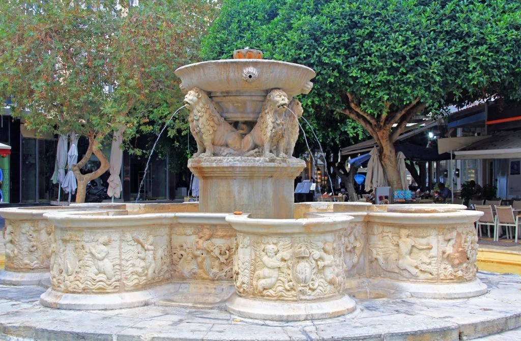 Тако се овде, код фонтане, у дебелом хладу и не знајући туристи из целог света друже са сенама Морозинија, Венизелоса и оног османског управника града који је на фонтани пробушио рупе, да би муслимани могли да се ритуално оперу пре молитве.