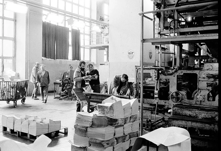 Први број "Времена" - Аутор овог текста Милан Милошевић у штампарији, (Фото: Горанка Матић/Време)