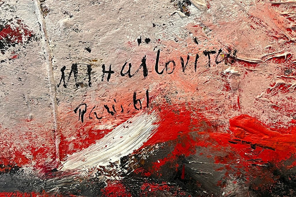 U trećem delu izložbe videćete Mihailovićeve rane radove, u kojima figuracija još uvek ima prednost nad apstrakcijom. Uz poneki pejzaž (kojima pripadaju i meni najzanimljivije slike ove izložbe: Stari Bar prikazan kao mistični vilinski grad u izmaglici i Procesija na Korčuli, religiozno-magična antropološka studija ostrva) ovde se nalazi i veći broj portreta (među kojima je i izuzetno intiman i ljubak prikaz supruge Ljubinke za stolom), jedan autoportret, zatim slika socijalno angažovane tematike bliske dobu u kojem je nastala – Pruga; ali i nešto neobičnija predstava Srbija sa volom,gde me je vizuelno rešenje Srbije podsetilo, slučajno ili ne, na prikaze svetih ratnika iz manastira Manasija. Stoga, uživali u apstraktnoj umetnosti ili ne, na izložbi Milorad Bata Mihailović – povodom stogodišnjice rođenja buntovnika akademika imaćete prilike da se upoznate sa širokim spektrom tema i motiva ovog umetnika i, sigurna sam, pronađete barem jednu sliku koju vam prija da posmatrate. Izložba će biti otvorena do 13. avgusta, te ne propustite da je posetite.