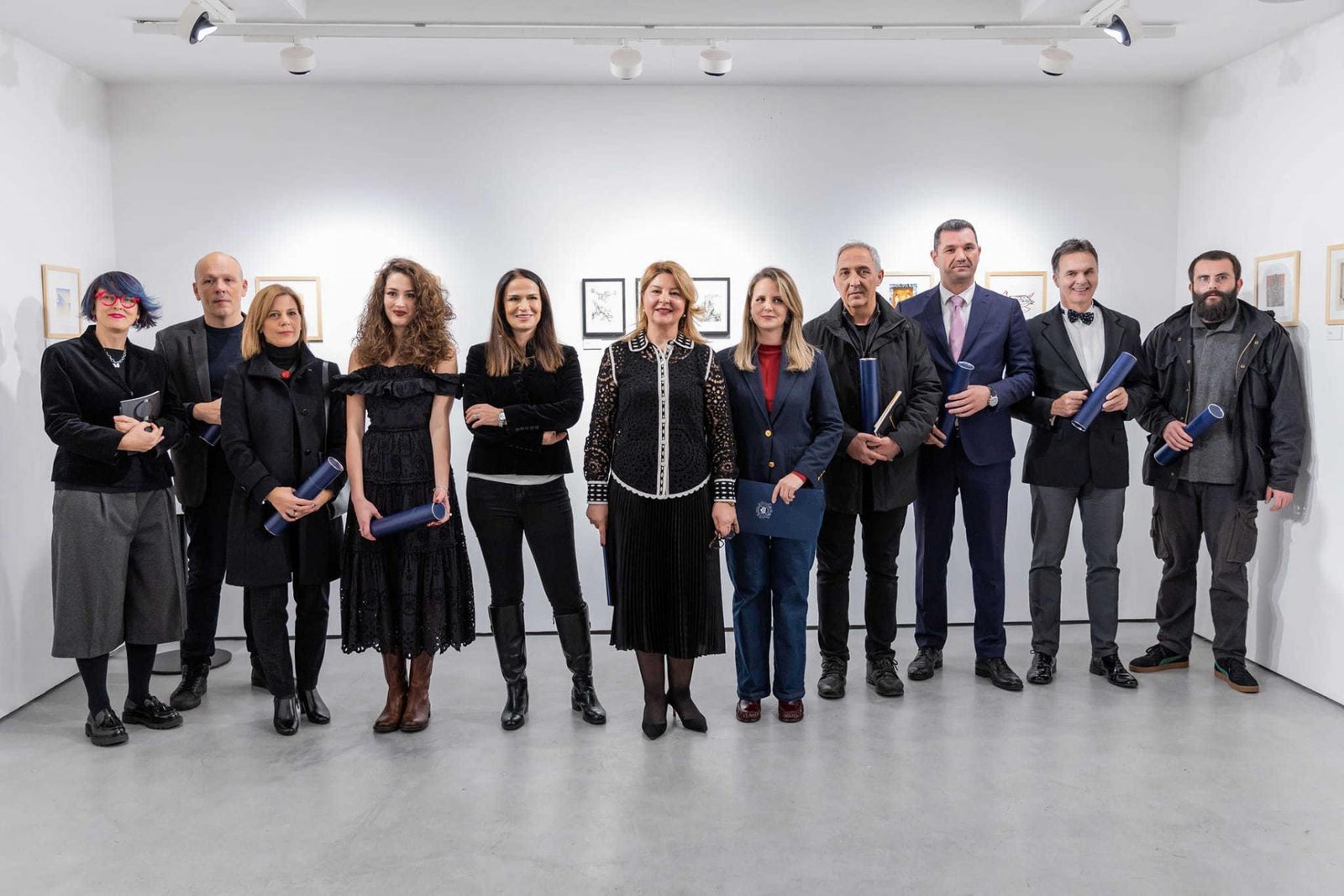 Прво издање новоосноване манифестације „Црногорска графика малог формата“ добило је и своје прве лауреате. Тако је проф. Мирко Тољић, редовни професор Академије ликовних умјетности у Требињу добио награду у категорији афирмисаних умјетника. Подсјетимо, награђени су и у категорији студентских радова Вукашин Тањевић и Анђела Дурутовић, док су плакете додијељене умјетницима Димитрију Поповићу и Жан Пјер Тангију. Постхумно, плакете су додијељене истакнутим црногорским ликовним умјетницима, који су поред сликарства изузетно умијеће приказали и у графици – Даду Ђурићу, Ђељошу Ђокају, Милу Грозданићу и Јакову Ђуричићу.