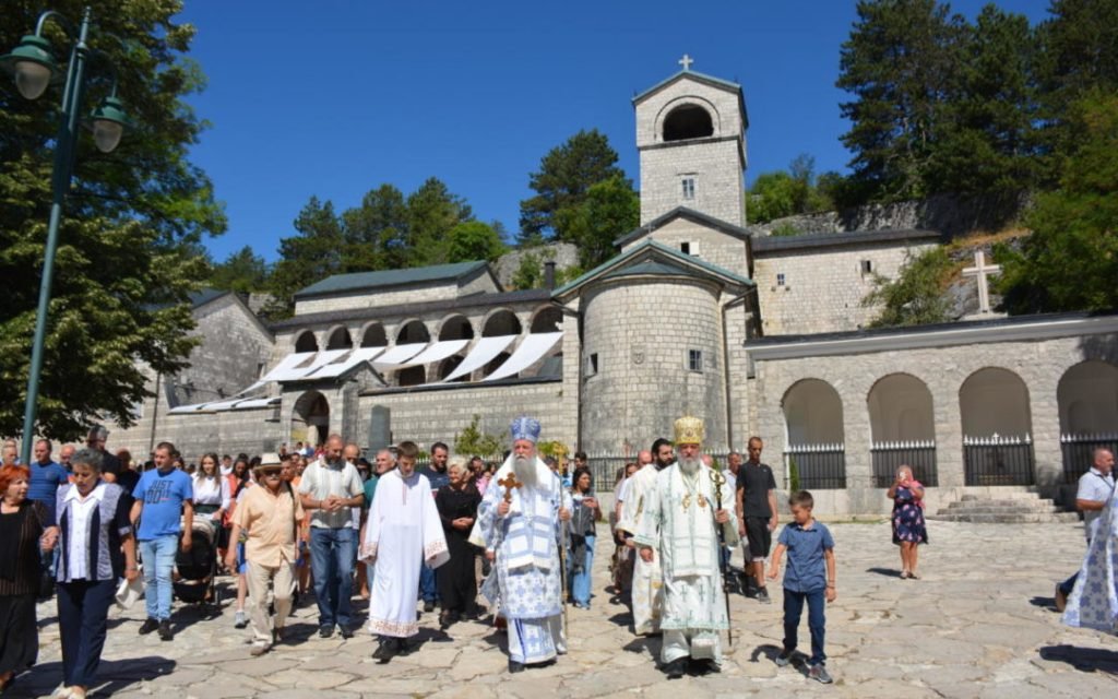 Po zaamvonoj molitvi iz Cetinjskog manastira je krenula praznična litija do temelja starog Cetinjskog manastira i obnovljenog hrama Rođenja Presvete Bogorodice, a na temeljima hrama Svetih apostola Petra i Pavla na Ćipuru blagosiljan je slavski kolač i koljivo.