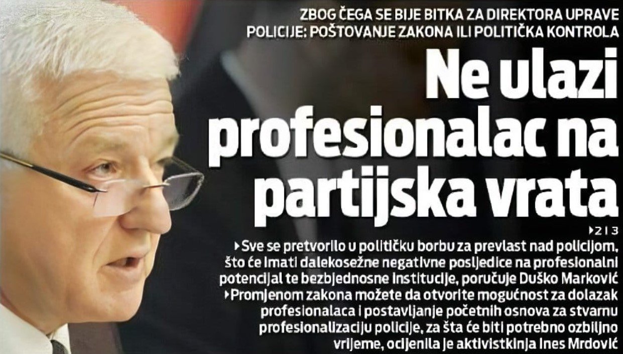 Јер, да живимо у таквом амбијенту, он не само да не би био саговорник “најчитаније дневне новине” на тему избора директора црногорске полиције, већ би био један од оптужених за морално и материјално разарање и криминализацију политичког и друштвеног амбијента. Абнормално је стање у криминализованом полицијском сектору које је креирао Марковић са својом партијском кликом, али не мање је абнормалан покушај његове медијске рехабилитације као “релевантног” саговорника, након свега што данас знамо.