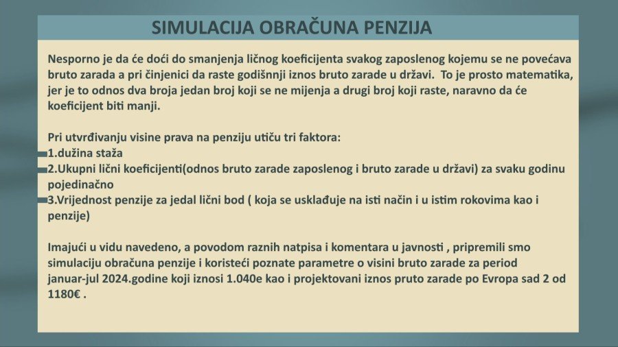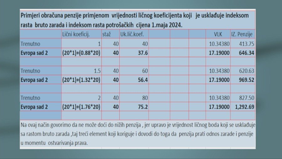 “Ako raste prosječna bruta zarada automatski vama raste i vrijednost ličnog boda”, kazao je ministar i dodaje da postoje tri komponente obračuna penzija.