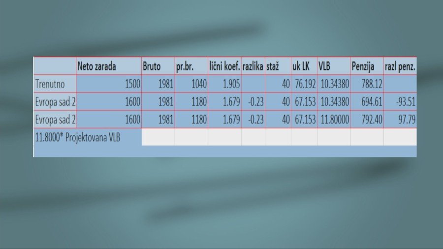 Pogledajte obračun penzija koji je za potrebe emisije Okvir pripremila stučna služba Fonda PIO: