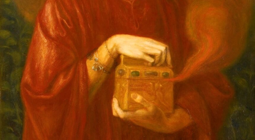 Касније сликарске и кипарске Пандоре имају кутије и кутијице. Године 1871. Данте Габриел Розети начинио је портрет Пандоре гдје она држи у рукама малу кутију од злата. Не знамо шта се у кутијици скрива, али знамо да то не слути на добро.
