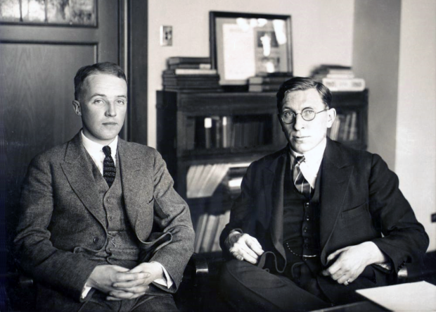 Фредерик Бентинг са својим асистентом Чарлсом Хербертом Бестом 1924. године