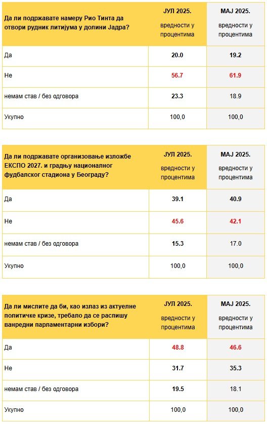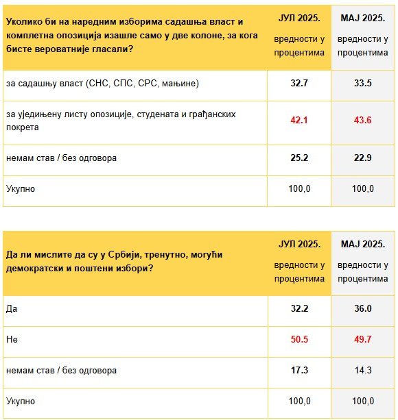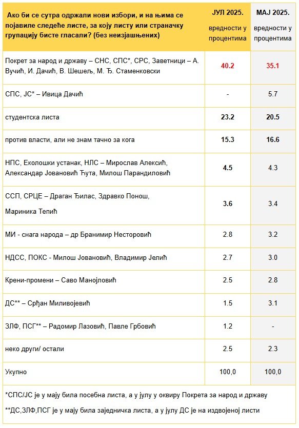 Компарација истраживања (Јул : Мај 2025)