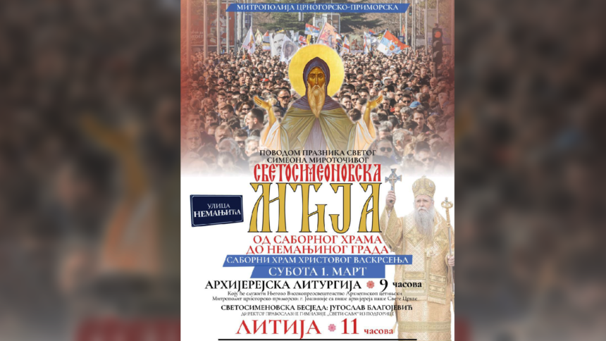 Mitropolija crnogorsko – primorska povodom praznika Svetog Simeona Mirotočivog, u subotu, 1. marta organizuje Svetosimeonovsku litiju od Sabornog hrama u Podgorici do Nemanjinog grada.