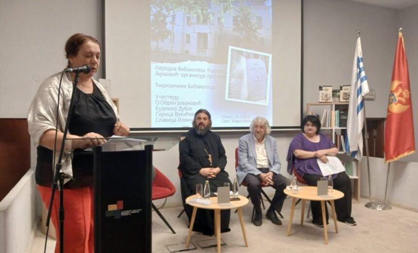 У Народној библиотеци ”Радосав Љумовић” – Подгорица, у уторак 23. септембра, одржано је програмско вече под називом ”Ћириличник Библиотеци”. На ову тему су говорили: протојереј-ставрофор Обрен Јовановић, архијерејски намјесник херцегновски, књижевник Будимир Дубак, новинарка Горица Вукићевић и управница Библиотеке, Славица Илинчић. Сабране је на почетку поздравила Славица Илинчић која је казала да је повод овог окупљања награда „Ћириличник“ коју је Народна библиотека ”Радосав Љумовић” добила на недавно завршеном дванаестом фестивалу „Трг од ћирилице“ у Херцег Новом.
