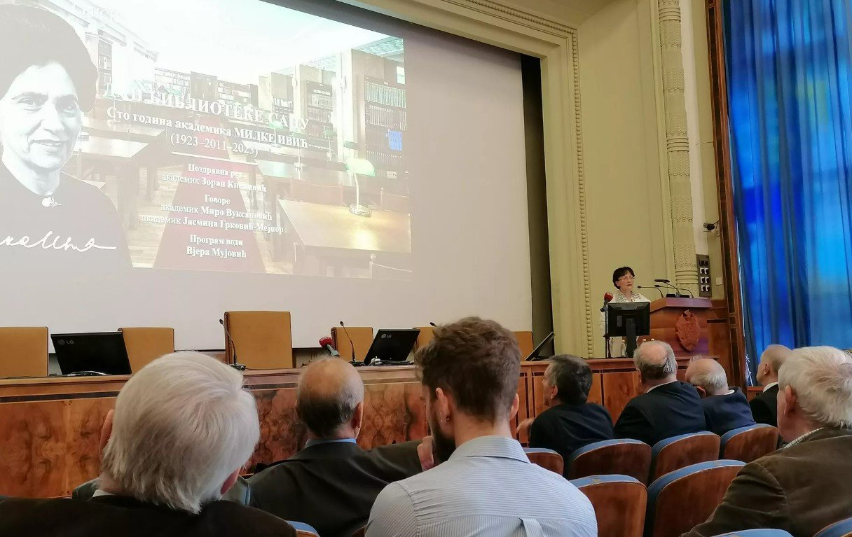 „Свуда Милка Ивић доследно, упорно, у последњим годинама са жељом да се ништа око ње не помера, да свака ствар буде на свом месту као и њена реченица, увек занесена одвојеним темама, уздизала је своју научну биографију од залуталог бруцоша до академика на гласу, угледу и утицају. Све се то могло наслутити у треперавој срећи Милке Ивић док узима матерњу реч, као комадић ретке руде, као драгоцену твар, као шкољку, као тајну, док матерњу реч отвара, пажљиво осматра, научно, а поредбено с другим језицима, док притом заматра што раније није виђено и док нас таквим проналасцима и својим књигама готово сићушног формата дарује као што није учинио нити један српски лингвиста досад”. Библиотека САНУ је почела са радом 14. јуна 1842. Усвојим фондовима, који се стално обогаћују, има око 1.500.000 публикација из свих области науке и уметности, збирку старих и ретких књига – споменика културе, 40 посебних библиотека, легата чланова Академије, фототеку са око 10.000 портретних и групних фотографија чланова Друштва српске словесности, Српског ученог друштва, Српске краљевске академије, Српске академије наука и Српске академије наука и уметности.