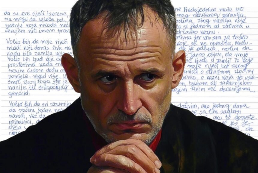 Може бити и негативна јер сам за тешко кривично дјело које не оправдава међу тим каква год да је одлука молим да моје писмо јавно објави, да моје ријечи чује што више људи, у земљи и у којој сам може да моје ријечи, да некога подстакну да размисли о стравичном злочину у коме сам учествовао и казни која је узео дијелу о дубоком, болном али закашњелом кајању са којим живим већ деценијама.