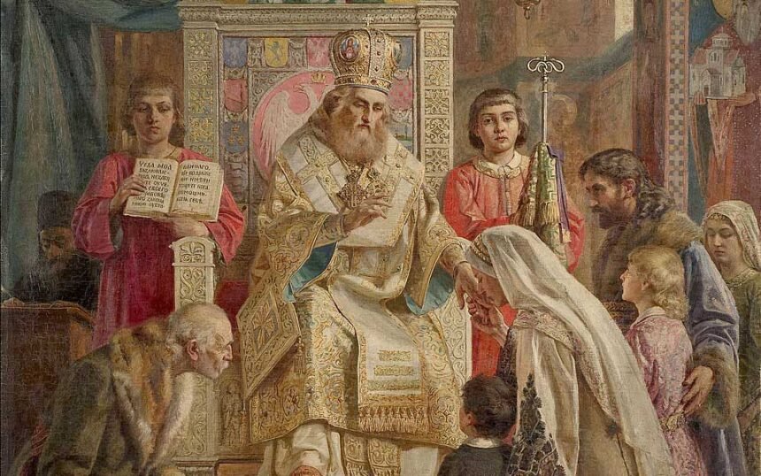 Foto: fragment slike Uroša Predića "Sveti Sava blagosilja Srbčad",
